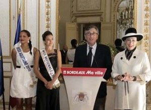 La "dame au chapeau" accompagnée de Barbara Morel, Miss Nationale et Lisa Sautron, Miss Aquitaine ont été reçues à la mairie de Bordeaux par (...)
