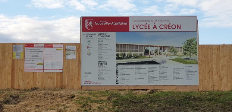 Lundi 28 février, a eu lieu la pose de la 1ère pierre du futur lycée de Créon, en présence des représentants de la Région Nouvelle-Aquitaine dont Alain Rousset, président de la région, de l’Académie de Bordeaux, de la Communauté de Communes du Créonnais, de la Communauté de communes Les Coteaux Bordelais, de la Communauté de communes Portes Entre-deux-Mers et Pierre Gachet, Maire de Créon.