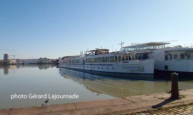 Depuis dimanche un nouveau pensionnaire a pris ses quartiers aux bassins à flot. Il s’agit du cinquième bateau de croisière le "M/S River Chanson" de la Grand Circle Cruise Line qui est une petite unité de 44 cabines laissant la possibilité d’accueillir 90 passagers en attendant une autre unité le "M/S Scenic Diamond" d’Holliday Check qui pourra accueillir 169 passagers. Pour le M/S River Chanson c’est une prestation nouvelle de la Grande Circle Cruise Line US qui offre ainsi 4 destinations de croisières en France destinées aux touristes Nord-américains.