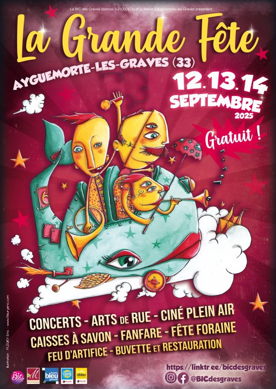 Du 12 au 14 septembre 2025, Ayguemorte-les-Graves vivra au rythme de La Grande Fête, un rendez-vous devenu incontournable pour les habitants du Sud-Gironde. Trois jours d’animations entièrement gratuites, organisées sur la Plaine des Sports, rassemblant spectacles de rue, concerts, cinéma en plein air et gastronomie locale.