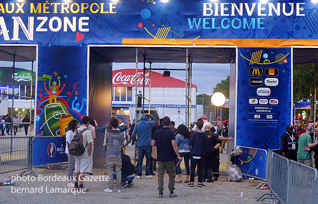 En ce premier jour d’Euro le gallois était omniprésent à Bordeaux de La Victoire à la Fan Zone et de Gambetta aux quais et alors chapeau ! Des supporters festifs et joyeux, sans aucune agressivité, souriant, chantant et rien à voir à ce qui se passait à Marseille dans un même temps ou c’était plutôt le fighting spirit qui se manifestait. Les supporters russes pas fainéants eux non plus ont répondu du tac au tac aux représentants de l’Albion qui puisent leurs origines dans le "Roman de Brut", ça ne s’invente pas ! Image pire que celle des conflits sociaux, décidément Marseille n’est pas chanceuse car en 1998 elle avait déjà eu des problèmes avec les supporters anglais. Pour dire la vérité, si Bordeaux avait hérité d’un huitième avec la présence de l’Angleterre la première Fête du vin n’aurait surement pas eu lieu mais le mardi 30 juin 1998 c’est la Croatie qui a éliminé la Roumanie à Bordeaux. Ainsi les 26, 27 et 28 juin 1998 la première Fête du Vin comme l’appelle les bordelais à eu lieu. A la Fan Zone ce serait plutôt Bordeaux Fête la bière car ils étaient bien rare ceux qui se déplaçaient sans verre de bière à la main mais pour en arriver là il fallait montrer patte blanche.