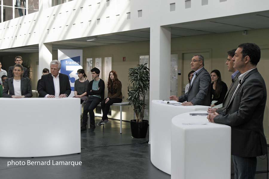- Brune Daudré, étudiante à l’IJBA ; Alain Ribet, rédacteur en chef d’Objectif Aquitaine, Pascal Cagnato de France3 Aquitaine ; Yves Maugue, rédacteur en chef de France Bleu Gironde et Patrick Venries, directeur général délégué de Sud-Ouest.