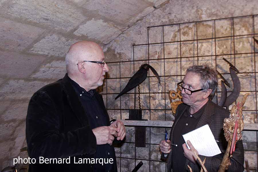 Beaucoup de monde à ce vernissage, et pas mal de succès pour les œuvres d’André Oviève. Le travail de cet homme, passionné et plein d’imagination, n’échappe pas à une forte charge symbolique. Deux arbres de la connaissance entre autres, évoquant la genèse, un grand et un petit, exposés et à la vente en sont le témoignage, « le début de nos soucis » nous dira-t-il, mais peut-être aussi celui de notre créativité …