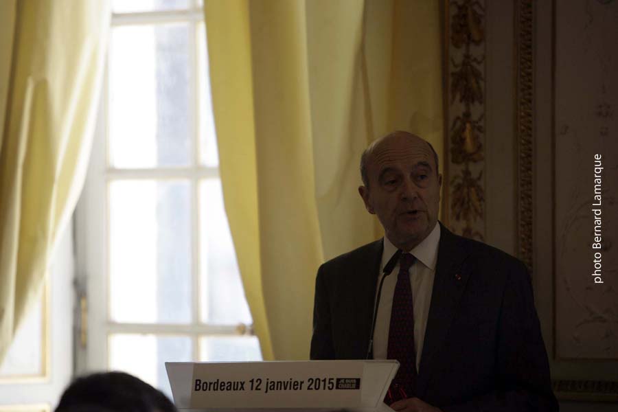 Bien sur Alain Juppé a ouvert son propos en citant les noms des victimes de ces funestes journées que la France vient de vivre. C’est ainsi qu’il a cité les noms de toutes les victimes pour les unir dans un même hommage en commençant par les victimes du mercredi au nombre de douze, puis l’unique du jeudi, pour en terminer avec les quatre du vendredi. Son propos a d’emblée été consacré à ces événements pour dire qu’il faut que les nations coopèrent pour lutter contre le fanatisme et soient déterminées. Il a souhaité que les propos soient encadrés car par moment on ne peut être pas tout dire et que l’on accompagne la communauté musulmane pour développer et propager un Islam des lumières. Il est revenu ensuite à une vision plus bordelaise des événements en proposant de développer Bordeaux-Partage, d’améliorer la sécurité, d’augmenter la vigilance autour des écoles et de faire durer l’esprit qui vient de se manifester.