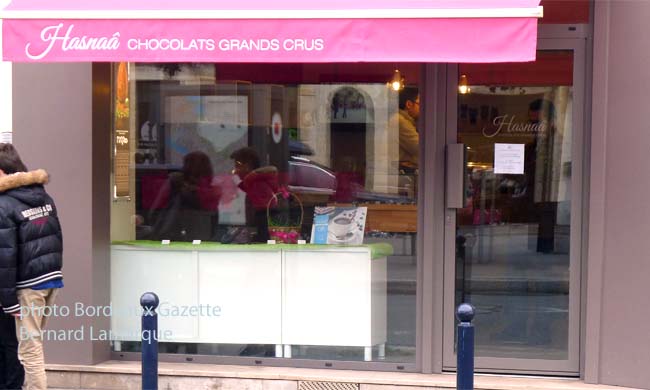 Depuis son ouverture le 3 novembre la boutique "Hasnaâ Chocolats Grands Crus" ne cesse de devenir connue et reconnue au travers de l’activité de la jeune chocolatière qui s’y dépense sans compter. Que de chemin parcouru depuis que la timide jeune femme se lançait dans l’aventure de MasterChef en 2012, suite a un pari avec Vincent, son époux. A cette époque elle manquait d’assurance, mais aujourd’hui c’est un vrai chef d’entreprise qui sait faire face. Le parcours a été semé d’embûches et elle a fait preuve d’une volonté et d’une ténacité sans égal. Après sa sortie de MasterChef elle est allé chercher une formation accélérée à Rouen dans le chocolat. Seule ville en France offrant cette formation et pour y accéder la sélection est impitoyable mais acceptée elle a vu la possibilité de réaliser son rêve. Compliqué d’être en formation à Rouen et de laisser mari et enfant à Bordeaux mais elle a franchi le cap brillament. Une fois le diplôme obtenu il fallait concrétiser et cela n’a pas été, là non plus, facile dans la conjoncture actuelle. Elle est passée par la Caisse Sociale de Développement locale et François Xavier Bordeaux son directeur fait aujourd’hui confiance à Hasnaâ pour sa consommation de chocolats.