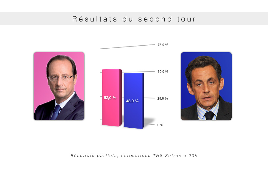 François Hollande est officiellement le nouveau président de la République française. L’ex-candidat socialiste a dépassé son adversaire UMP de 4 points : 52% pour François Hollande, contre 48% pour Nicolas Sarkozy.