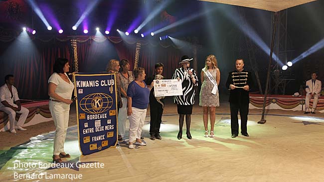 C’est dans le cadre du cirque Amar parrain de l’association depuis 2002 avec aussi le parrainage des Kiwanis en présence de Geneviève de Fontenay qu’un chèque de 3.500 euros a été remis à Laurence Baert, présidente de l’Association. Geneviève de Fontenay pour sa part soutient cette association depuis l’année 2000, elle est régulièrement présente a ses côtés et à Bordeaux elle était accompagnée par Miss Prestige Aquitaine.