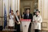 La "dame au chapeau" accompagnée de Barbara Morel, Miss Nationale et Lisa Sautron, Miss Aquitaine ont été reçues à la mairie de Bordeaux par Stéphane Delaux et Joël Solari, pour lancer l’élection de Miss Bordeaux qui aura lieu mardi 17 mai au Casino Barrière de Bordeaux. C’est toujours la guerre entre Endémol et ses pratiques strictement commerciales et la vision plus traditionnelle de Geneviève de Fontenay.