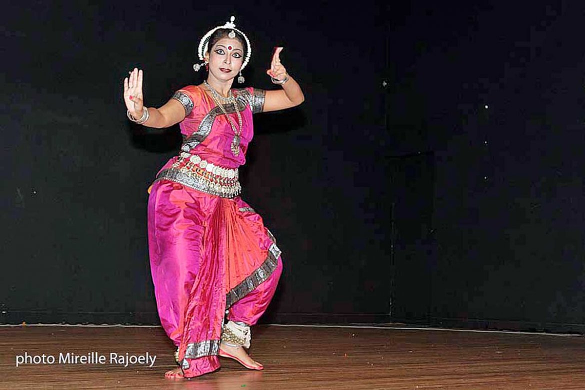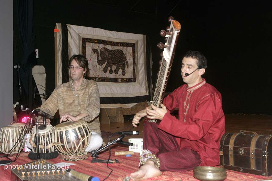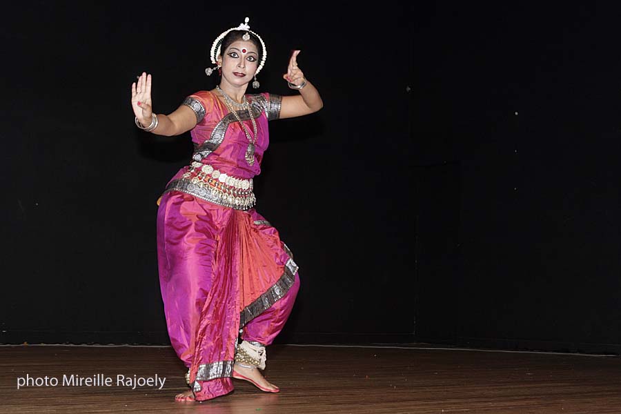 La soirée s’est poursuivi par un concert sur instruments traditionnels indien du duo Mandhaylaya et s’achevait par une démonstration de danse « Odissi » de Srinwanti Chakrabarti. La danse « Odissi » caractérisée par ses positions sculpturales est originaire de l’Etat d’ Orissa à l Est de l’Inde et remonte à une tradition millénaire.Elle fut déjà pratiquée par les danseuses des temples ainsi qu’ à la cour royale.