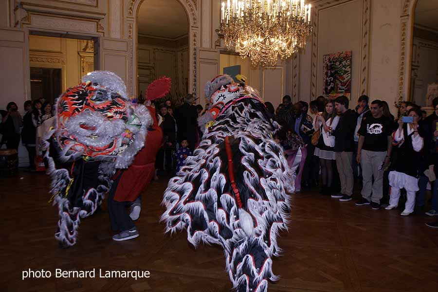 Ainsi sous l’impulsion de Cathy Schein de l’association franco-vietnamienne, de Madame Kim de l’association coréenne de Bordeaux et Yang Xu représentant les chinois de Bordeaux le monde asiatique s’est regroupé pour être reçu à l’Hôtel de Ville qui n’avait jamais vu les dragons évoluer dans ses murs ni entendu les percussions coréennes. Plutôt que de parler comme on le fait souvent du nouvel an Chinois, on parle plus volontiers de Nouvel An Lunaire car cette culture regroupe beaucoup plus qu’un milliard d’individus. Car si ce nouvel an est célébré officiellement en République populaire de Chine (sept jours de congés) et en République de Chine (Taïwan) (au moins cinq jours), à Hong Kong et Macao (trois jours), ainsi que dans certains pays d’Asie où l’influence de la culture chinoise est importante, ou dont la population comprend une forte minorité de Chinois ethniques : Singapour et Malaisie (deux jours), Philippines (trois jours), Brunei et Indonésie (un jour), Thaïlande, Viet Nam (fête du Têt, trois jours, avec un jour de décalage avec la Chine tous les 22 ou 23 ans pour compenser le décalage horaire entre Pékin et Hanoï), Corée du Sud ( trois jours). Il est observé individuellement partout dans le monde par les membres de la diaspora chinoise, et parfois également par les Japonais, les Miao, les Mongols, les Tibétains, les Népalais et les Bhoutanais, autrement dit une très très vaste communauté.