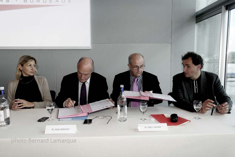 - Nathalie Delattre,représentant le maire de Bordeaux, Alain Rousset, Gilles Savary représentant Philippe Madrelle et Vincent Feltesse lors de la signature