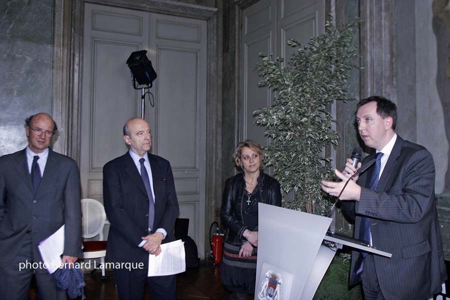 - Josy Reiffers, Adjoint chargé de l’emploi, du développement économique, de la recherche et de l’enseignement supérieur, du développement de la Cité numérique ; Alain Juppé, Maire de Bordeaux ; Pascale Avargues Directrice des Systèmes d’Information, mairie de bordeaux et Christophe Bonnard,Directeur de Sogeti France