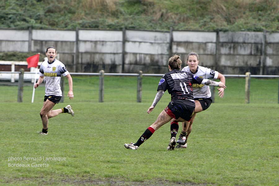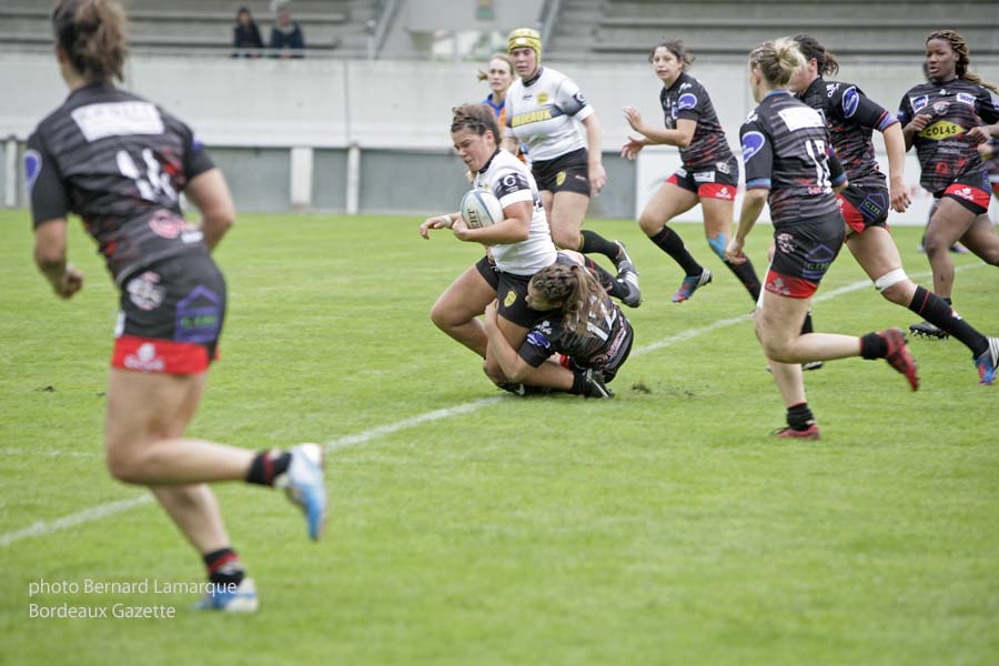 Les Louves de Bobigny sont venus prendre le gain du match face à une valeureuse équipe des Lionnes du Stade Bordelais en mal de victoires. Une blessure d’une des joueuses de Bobigny a gravement perturbé le déroulement de cette rencontre car malheureusement touchée aux cervicales. Cela n’a pas pour autant déstabilisé l’équipe de Bobigny qui l’a emporté par 20 à 6.