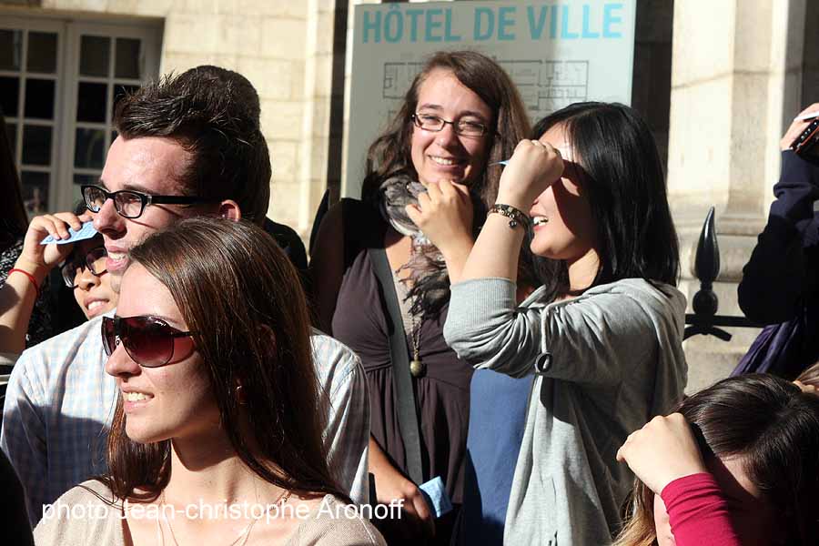 C’est pour clore une journée de découverte destinée aux nouveaux étudiants pour qu’ils se familiarisent avec leur récent lieu de résidence qu’est Bordeaux, que ce rassemblement festif a eu lieu. Organisé autour de 3 parcours de découverte conduit par les k-ways rouges, verts ou violets selon les itinéraires, les participants ont apprécié et si on les interroge ils sont venus souvent à Bordeaux pour découvrir la capitale régionale de l’Aquitaine qui leur semble très attractive en regard d’autres villes.