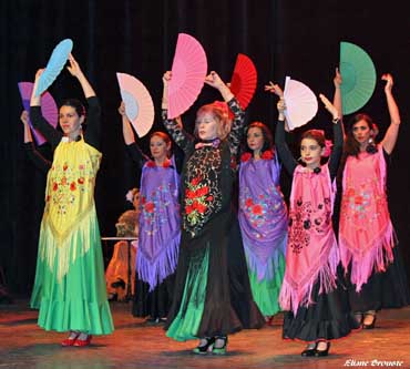 Les sévillanes, seront bien entendu au rendez-vous, tout au long de la soirée, et présentées dans différentes chorégraphies, avec enfants ; jeunes adultes et adultes . Trois générations sur scène ! A signaler, au cours de l’année 2012 : Des 1er et 2ème prix enfants ainsi que 1er prix adultes, obtenus en concours lors de la Primavera Andaluza à Mont-de-Marsan et du Festival de flamenco à St-Jean-de-Luz, et une reconnaissance départementale dans le cadre de la Fédération Française de Danse ! Il y aura encore des surprises, cette année, avec des chorégraphies, montées de toutes pièces, par certaines danseuses auxquelles Pedrina laisse toute liberté de choix musical, style et créativité. Il faut signaler, également l’exceptionnelle participation de la danseuse orientale Angélique JULIA de la compagnie Ausatinrouge de Bordeaux, ainsi que du groupe de danseurs Flamenco LOS BALDES venus spécialement de Tarbes, pour continuer à envoûter les spectateurs dans la seconde partie de cette soirée d’exception.