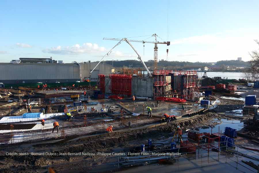 Les conditions météorologiques contrariantes de ces dernières semaines n’entravent pas l’avancée du chantier. Les travaux se poursuivent et avancent à grands pas. Les fondations profondes sont posées, le dallage en béton du rez-de-chaussée est quasiment terminé. On commence à voir nettement les contours au sol de la structure se dessiner !