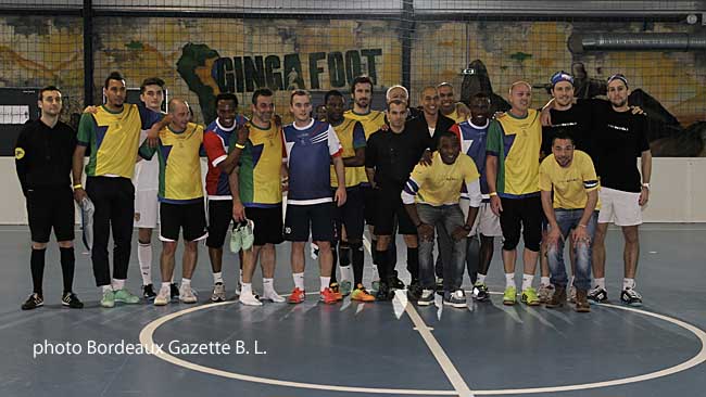 Ils ont un deuxième projet dans les cartons mais celui-ci ne verra le jour qu’à la rentrée, mais entre temps car ils sont infatigables, ils ont décidé en partenariat avec l’ancien joueur des Girondins Lassina Diabaté de mettre sur les rails un projet lié à la Coupe du Monde en créant une marque éphémère : Qui sera roi à Rio ?. Pour cette soirée de Futsal pour le lancement du concept à Ginga foot ils ont créé deux maillots l’un aux couleurs de l’équipe de France et l’autre aux couleurs du Brésil pour permettre à deux équipe de s’affronter. C’est ainsi que Lassina Diabaté s’est retrouvé sous les couleurs de la France et Yohann Micoud sous les couleurs du Brésil où ils ont démontré que techniquement il n’ont absolument rien perdu et physiquement ils ont encore une excellente forme. L’idée est extrêmement simple on achète le pack de l’équipe que l’on veut soutenir qui se compose d’un tshirt noir ou blanc et d’un brassard aux couleurs du pays que l’on veut soutenir. Il n’est pas interdit d’avoir plusieurs favoris, pour l’instant la vente se met en place progressivement car le concept vient juste d’être dévoilé et le prix du pack sera de 17,50 € sur le net et légèrement plus élevé en boutique ou dans un premier temps on devrait le trouver à Bordeaux, Paris et Marseille.