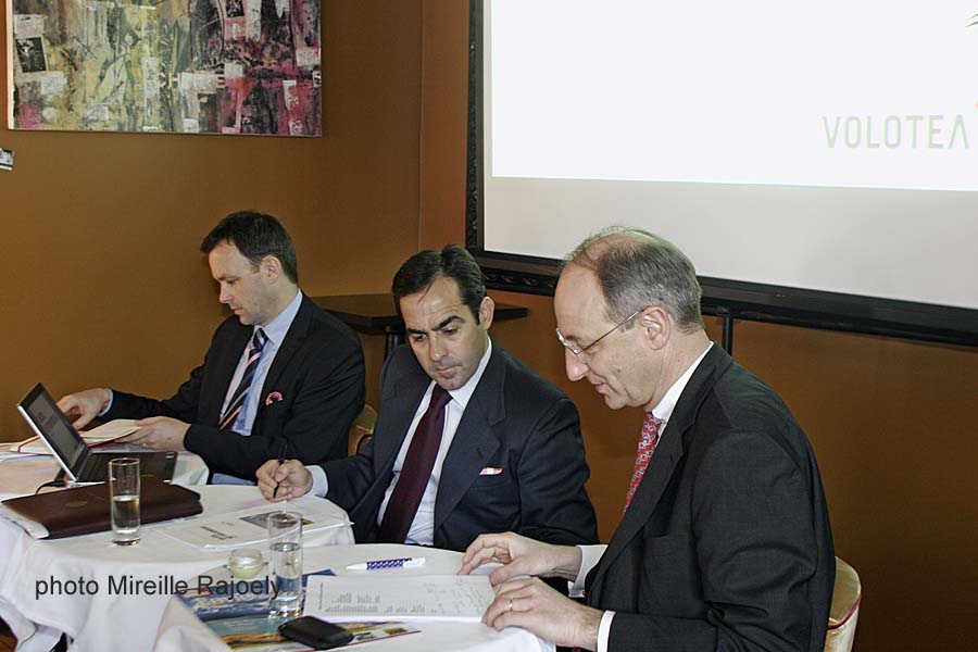 - Edo Friart (French Development Manager de Volotea), Carlos Muñoz (PDG de Volotea) et Pascal Personne (Président du directoire de l’aéroport de Bordeaux Méignac)