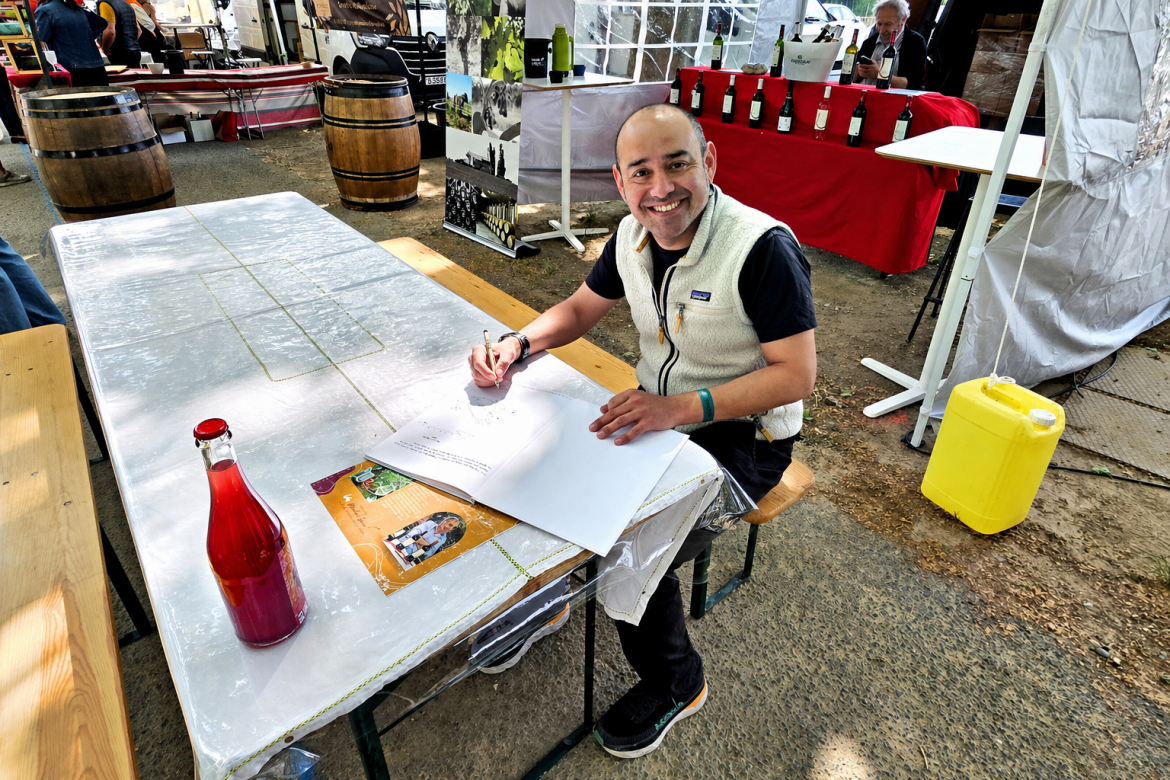 Son travail avait également été présenté à La Réole, lors de Vindediou 2026, où Bordeaux Gazette avait rencontré l’artiste autour de son univers graphique lié au vin. Dans ce rendez-vous mêlant vignerons, concerts, gastronomie locale et animations sur les quais, sa présence trouvait naturellement sa place parmi les propositions cherchant à raconter le vin autrement.