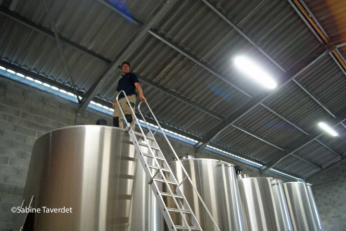Aux neuf cuves bétons d’une capacité comprise entre 25 et 250 hectolitres, sept cuves inox sont venues s’ajouter. Auparavant à l’extérieur, ces nouveaux contenants de 102 à 154 hectolitres sont maintenant abrités suite à l’expansion du chai il y a deux ans. C’est ici que, dès sa séparation avec la vigne, le précieux raisin se transforme. « Après la rentrée des vendanges, on vinifie. Une première fermentation alcoolique qui transforme le vin en alcool se fait dans les cuves en inox ce qui permet de maîtriser la température. Puis, la deuxième fermentation et l’élevage du vin s’établie en cuve ciment entre 20 et 22 degrés. Le vin est alors remis en aérien pendant l’hiver pour enlever les impuretés qui se déposent naturellement par le froid. » détaille-t-il. Dans les barriques, c’est la cuvée spéciale « fût de chêne » qui murit. Paul choisit un vin de coteau sur Belvès-de-Castillon, assez charnu, pour supporter le goût du bois. Elle y passera entre 10 et 18 mois. L’année suivante, la cuvée lyrique y séjournera après une première fermentation en cuve inox pour apporter finesse et fondue du boisé.