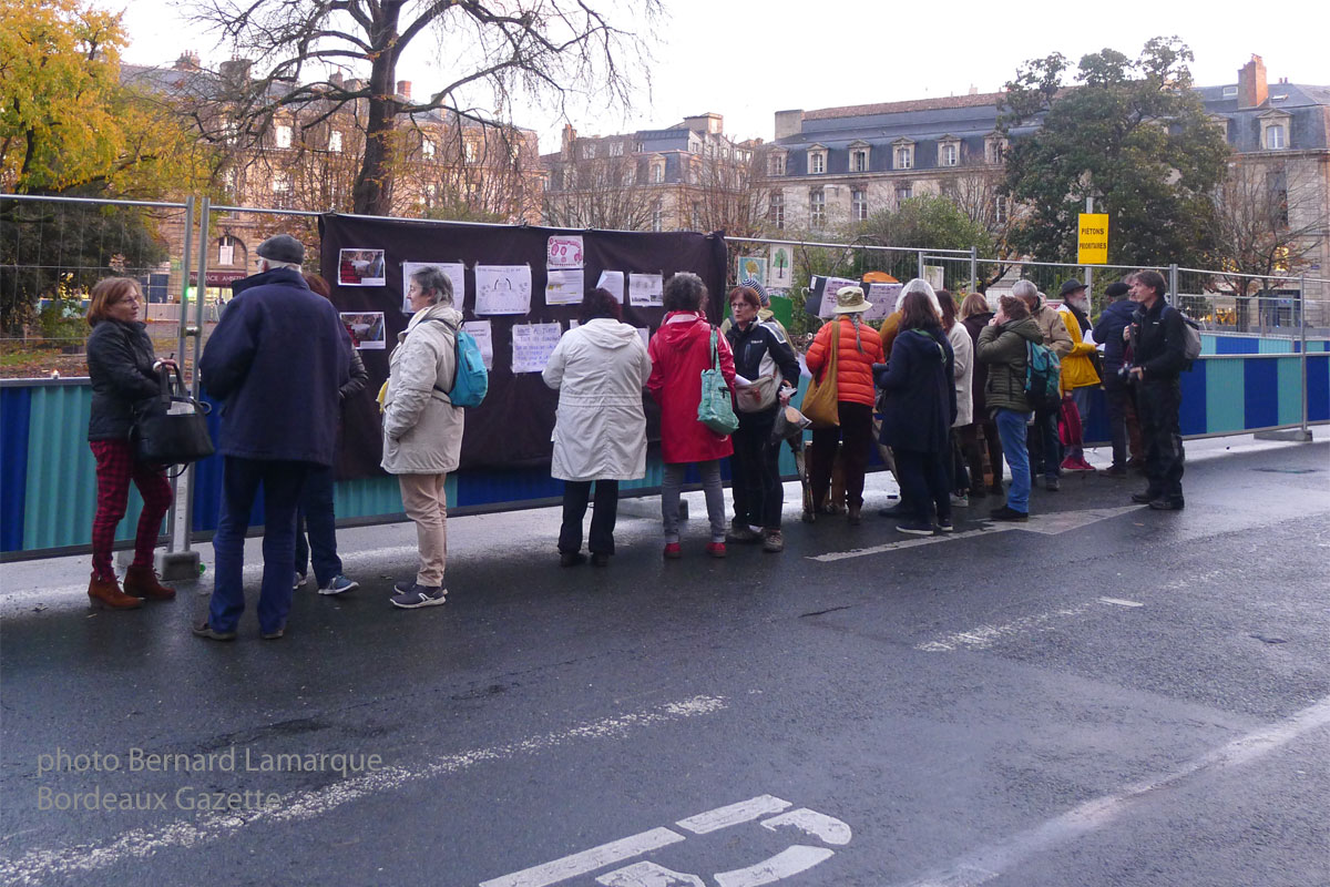 Lors d’une veillée funèbre le collectif des Marronniers de Gambetta a remercié tous les présents et tous ceux qui avaient soutenu leur combat et a avoué son échec dans cette lutte du pot de terre contre le pot de fer regrettant de s’y être pris un peu tard et de n’avoir pas su porter cette affaire en justice. A Chatelaillon le maire a mordu la poussière sur ce type de différent et des platanes ont été sauvés c’est pourquoi il a été annoncé que dès ce soir du 23 novembre le collectif changeait de nom pour s’appeler AUX ARBRES CITOYENS dont l’objectif sera double d’une part protéger les arbres en milieu urbain et d’autre part faire progresser la législation contre les abattages intempestifs. Un mur de la honte a été affiché sur les protections isolants le site pour information aux passants. Lors de cette soirée Pierre Hurmic a aussi précisé qu’une bataille avait été perdue, mais pas la guerre et il a fait sienne la citation de Nelson Mandela : "Je gagne ou j’apprends" et il semblerait qu’il a beaucoup appris ce qui lui servira pour d’autres combats car l’écologie est au centre des préoccupations actuelles. L’écologie punitive comme pratiquée par Emmanuel Macron n’est pas la bonne solution. Nicolas Hulot a un peu mis les pieds dans le plat dans l’émission : Politique, en laissant clairement entendre que dans ce combat les riches doivent plus contribuer que les pauvres qui eux devraient être soutenus dans cette évolution.