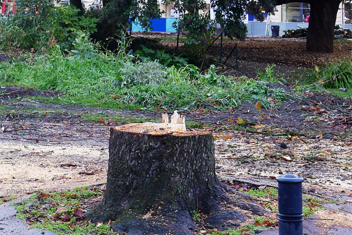 Bien sur Alain Juppé avait déclaré quelque part d’une certaine manière que ces marronniers ne valaient pas plus que quelques pins des Landes, oui mais voila des pins des Landes il n’y en a pas dans le centre de Bordeaux et on ne peut pas troquer des Magnoliopsida contre des Pinopsida. Sur cette place il n’y avait que des marronniers (Magnoliopsida) septuagénaires presque de l’âge de celui qui a décidé de leur sort, le décideur n’étant pas l’exécutant la sentence a été menée à bien au petit matin par un commando habillée de sombre, comme on suppliciait les condamnés à mort avant 1981 au petit matin, avant le point du jour et discrètement. Il n’y a pas eu de recours en grâce et cela a choqué bon nombre de bordelais et au delà qui n’étaient pas vraiment au courant mais qui aujourd’hui découvrent affligés ce paysage de désolation. Bien sur on crie a tue-tête que l’on va replanter des arbres mais s’ils sont comme les gringalets de la rue Elie Gintrac on en a pour un siècle avant qu’ils ne fournissent un peu d’ombre et qu’ils transforment un tant soit peu le gaz carbonique en oxygène, la planète sera "foutue" depuis un moment. Il faudrait à minima replanter des essences de trente ou quarante ans d’âge. On risque aussi de voir disparaître le petit cours d’eau au profit d’une fontaine soigneusement bétonnée avec des espaces minéralisés laissant la portion congrue aux espaces verts que l’on conduit ainsi vers la sortie.