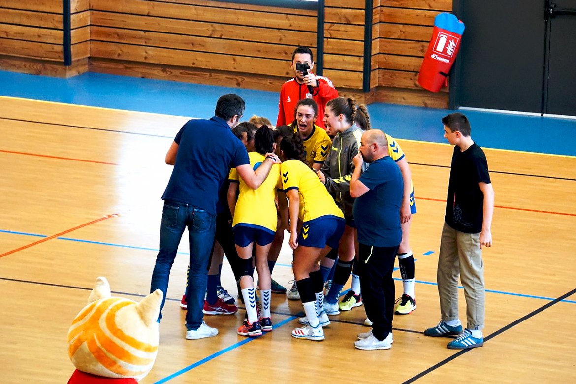 Et puis une suite d’évènements en défaveur de l’ASPOM se produit 2 exclusions temporaires, une exclusion définitive du coach, la capitaine qui se démet l’épaule, et la victoire qui semblait s’envoler définitivement dans cette finale ; on est à la 44ème (reste 6 mins) et 3 buts à remonter. C’est à ce moment, que cette jeune équipe de guerrières malgré leur triple infériorité à 6 contre 3 décide d’enclencher la marche avant. Elles arrivent à 3 seulement à marquer un but et à ne pas en encaisser (17-19 pour Floirac à la 48ème). Poussées comme jamais par un public en fusion venu en nombre pour soutenir leur équipe, c’est le tournant du match pour l’ASPOM qui recolle au score à 1 min 30 du terme ce cette partie et qui a même la balle de la gagne, comme Floirac d’ailleurs à 5s secondes de la fin, qu’elles manquent toutes les 2.
