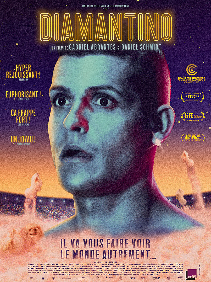 Synopsis : Magnifique, candide et attachant, Diamantino est l’icône planétaire du football, un héros flamboyant touché par la grâce. Quand soudain, en pleine Coupe du Monde, son génie s’envole dans les vapeurs roses de ses visions magiques, sa carrière est stoppée net. Problème : il ne connaît rien d’autre. La star déchue, devenue objet de risée nationale, découvre alors le monde – les autres. Le voilà embarqué dans maintes péripéties qui mutent en odyssée : conspiration familiale (ses deux soeurs n’en veulent qu’à sa fortune), manipulations génétiques délirantes, crise des réfugiés, complotisme de l’extrême-droite… Et, au beau milieu de cette tragédie, où son chat semble être son dernier supporter, pourtant, surgit l’Amour. Le vrai. C’était écrit.
