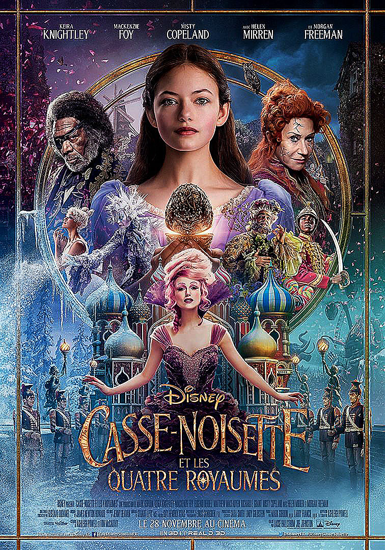 Synopsis : Tout ce que souhaite Clara, c’est une clé. Une clé unique en son genre, celle qui ouvrira la boîte contenant l’inestimable cadeau que sa mère lui a laissé avant de mourir. À la fête de fin d’année organisée par son parrain, Drosselmeyer, Clara découvre un fil d’or qui la conduit jusqu’à cette précieuse clé … mais celle-ci disparaît aussitôt dans un monde étrange et mystérieux. C’est dans ce monde parallèle que Clara va faire la connaissance d’un soldat nommé Phillip, d’une armée de souris, et des souverains de trois Royaumes : celui des Flocons de neige, celui des Fleurs et celui des Délices. Pour retrouver cette clé et restaurer l’harmonie du monde, Clara et Phillip vont devoir affronter la tyrannique Mère Gingembre qui vit dans le quatrième Royaume, le plus sinistre d’entre tous…