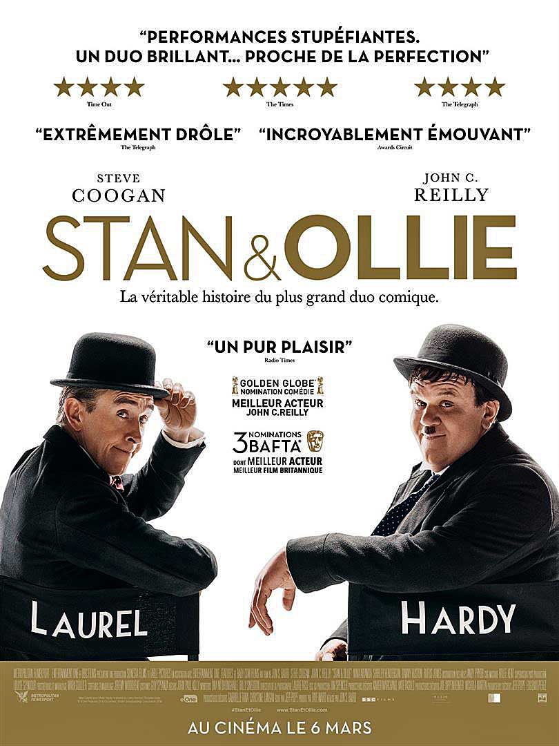 Synopsis : 1953. Laurel et Hardy, le plus grand duo comique de tous les temps, se lancent dans une tournée à travers l’Angleterre. Désormais vieillissants et oubliés des plus jeunes, ils peinent à faire salle comble. Mais leurs capacités à se faire rire mutuellement et à se réinventer vont leur permettre de reconquérir le public, et renouer avec le succès. Même si le spectre du passé et de nouvelles épreuves ébranlent la solidité de leur duo, cette tournée est l’occasion unique de réaliser à quel point, humainement, ils comptent l’un pour l’autre…