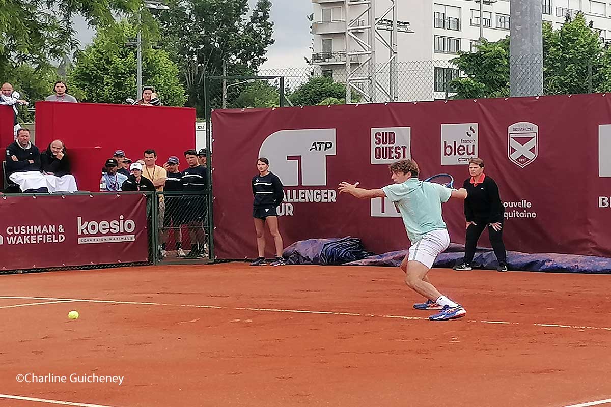 Le début du match s’est pourtant fait à jeu égal entre Arthur Cazaux (197e) et Arthur Rinderknech (89e). Mais le Montpelliérain a pris le dessus à deux jeux partout dans le premier set. Enchaînant les volées et les amortis, il remporte un troisième jeu. Il creuse l’écart en faisant déplacer son adversaire, Arthur Rinderknech, tel un essuie-glace sur le terrain. Il obtient un cinquième jeu avec un magnifique lobe, juste devant la ligne. Après le premier set de gagné, il continue de s’affirmer avec cinq jeux à deux. Mais Arthur Rinderknech s’accroche une dernière fois en sauvant un jeu, avant de perdre (2/6-3/6) contre Arthur Cazaux.