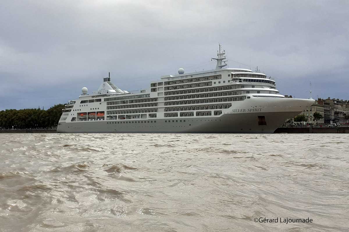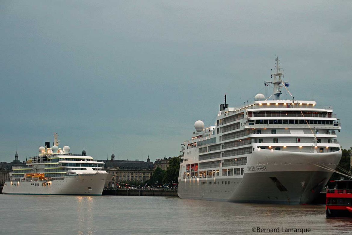 Le Silver Spirit a appareillé de Southampton en Angleterre pour conduire ses passagères et passagers tout d’abord en France, la première escale étant Honfleur puis nouvelle escale, toujours en France à Saint Malo avant d’accoster à Bordeaux où il va passer le week-end comme beaucoup de navires précédents. Il va repartir ensuite en direction de l’Espagne pour faire escale à Bilbao, La Corogne, Vigo pour terminer son périple à Lisbonne pour cette croisière. On voit ainsi que sur ce type de croisière européenne sur la façade Atlantique, Bordeaux est l’étape du week-end permettant aux touristes de visiter la ville comme on a pu le voir samedi matin avec ces grappes de touristes attentifs attaché(e)s à un guide qui commente les édifices de la ville et on peut apercevoir simultanément plusieurs groupes. Le Silver Spirit a été lancé en février 2009 sortant des chantiers Ficantieri à Trieste de 210 mètres de long sur 27 mètres de large pouvant accueillir près de 650 passagers dans des conditions luxueuses.
