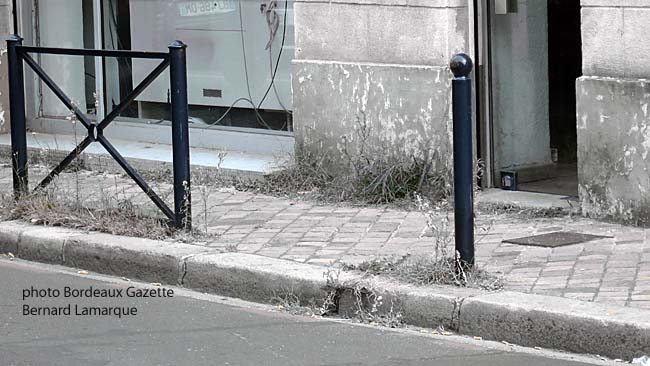 La saleté accompagnant cet écologisme sans contrainte, ainsi que l’esthétique plus que douteuse résultant de ce quasi abandon des lieux aux forces de la nature, incommode cependant bon nombre de bordelais parmi lesquels se trouve le bataillon désormais minoritaire des « courageux ringards » plutôt excédés. Ces derniers, ayant encore et toujours la force de se baisser, entretiennent avec persévérance leurs trottoirs face aux assauts et au développement anarchique de la broussaille environnante, tout en désespérant de redonner un jour à leur rue ou à leur quartier une autre allure que celle d’un lieu négligé malpropre et moche !!! Rien à voir bien sûr avec les rues harmonieusement fleuries, le plus souvent fort jolies, rues d’ailleurs absentes dans pas mal de quartiers où c’est la nature qui fait tant bien que mal le travail toute seule, avec pour seul avantage d’entretenir le laisser-aller ambiant …...