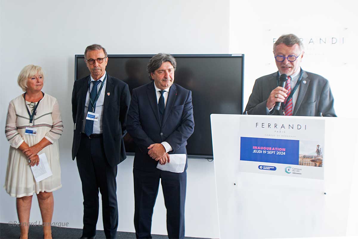 Ce vendredi de la semaine passée, de nombreuses personnalités ont honoré de leur présence cette inauguration de l’espace Premium de l’École FERRANDI de Bordeaux avec la participation de Thomas Cazenave, ministre délégué démissionnaire aux Comptes publics qui la veille au soir état à la télévision sur BFM dans "Tout le monde veut savoir", de Nathalie Delattre, Vice-Présidente du Sénat, Hervé Gillet Sénateur de Gironde et Edwige Diaz députée de la Gironde. C’est le président de la CCI, Patrick Seguin qui a pris la parole en premier en tant que puissance invitante pour saluer les présents avec une petite sortie en direction du maire présent, en lien à la présence d’un paquebot de croisière ancré dans le port dont on sait que le maire n’aime pas çà.