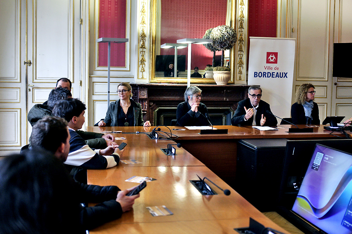 - En présence de Pierre Hurmic, maire de Bordeaux, Delphine Jamet, adjointe au maire chargée de l’administration général et Delphine Gramaglia, architecte du patrimoine.