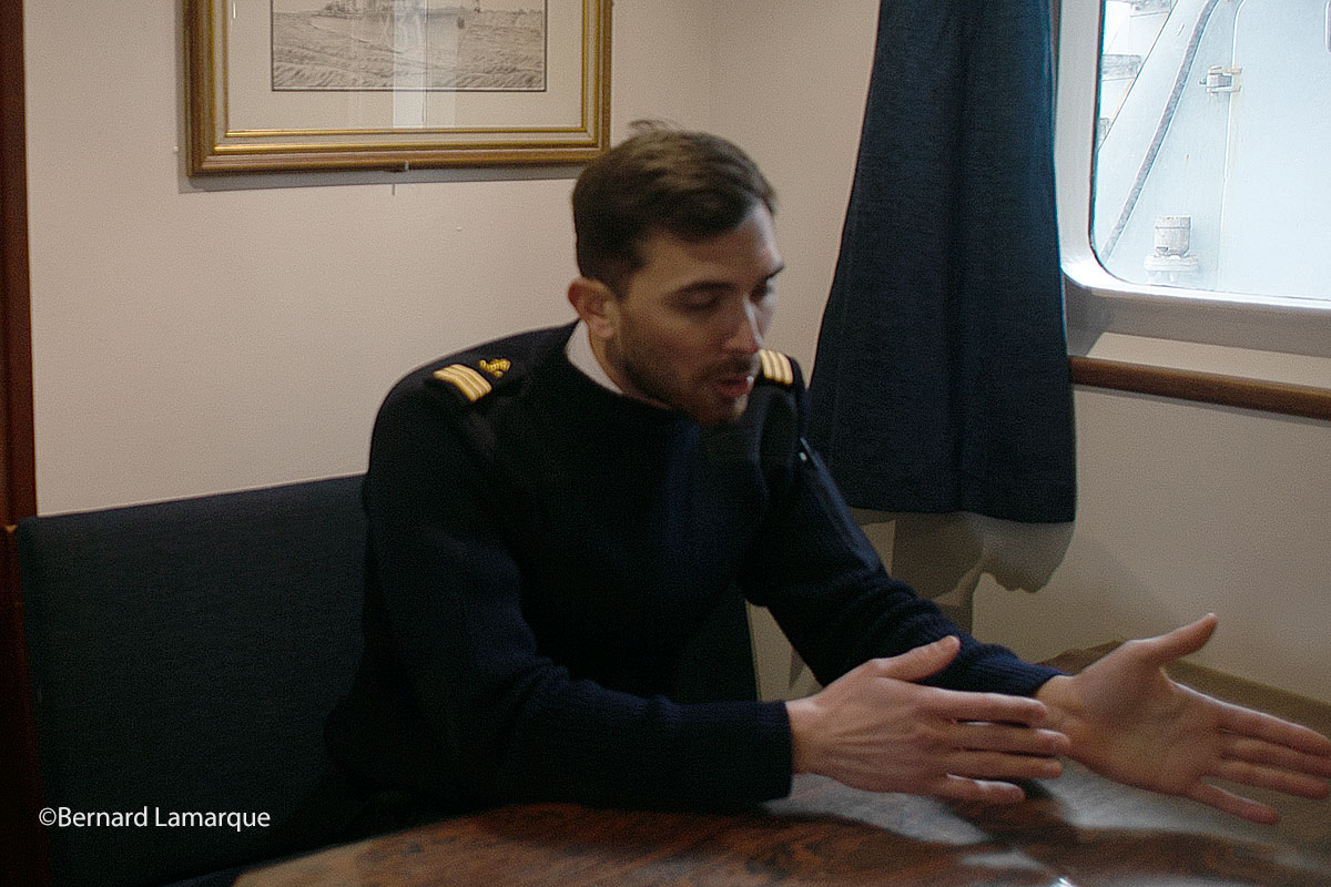 La ville marraine du Léopard est Libourne, c’est pourquoi ce vendredi 24 février dès 13 h 30, les élèves des Classes de Défense, et notamment celle du lycée Jean Monnet de Libourne ont pu se rendre à bord de ce navire pour en effectuer la visite et entrer en contact ave les marins et officiers du bord. Ces élèves ont pu ainsi renontrer les élèves officiers qui sont en formation durant cette "corvée de formation" comme le précise Luc Richard, lieutenant de vaisseau, commandant le Guépard qui accompagne le Léopard pour cette sortie de quinze jours comme cela se pratique régulièremnt avec départ de Brest et retour à Brest avec une semaine aller en mer avec de nombreux exercices jusqu’au port escale choisi pour la sortie et retour la semaine suivante vers le port d’attache aveun programme bien chargé pour les élèves officiers.