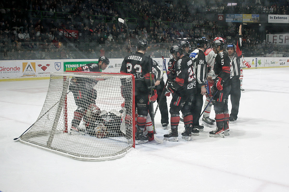 Surpris dès l’entame de cette troisième période avec un but au bout de 20 secondes de jeu sur la première attaque des grenoblois, les bordelais reprennent leur place dans ce jeu de chaises musicales et doutent une nouvelle fois. L’égalisation de l’équipe visiteuse témoigne d’un jeu plus juste avec des attaques plus précises et plus nombreuses. Mais le portier des Boxers, au rendez-vous, se présente une fois de plus comme le problème dans l’équation. Poussé par un public qui y croit plus que jamais, Bordeaux décroche les prolongations face à la deuxième meilleure attaque du championnat. Malheureusement, le scénario catastrophe a lieu quelques secondes plus tard. Nicolas Deschamps, avec un dribble sur la remise en jeu, inscrit un but au bout de 4 secondes et vient anéantir les espoirs bordelais. Cruelle fin de match qui aurait mérité, au moins, plus de suspense. Les bordelais devront relever rapidement la tête afin d’essayer de mettre fin à leur série de défaites ce vendredi 20 janvier à domicile face à Anglet.