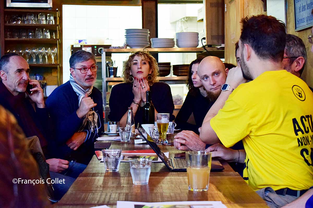 Le concept d’État de nécessité environnemental avait également été invoqué lors du premier procès pour justifier cette action de désobéissance civile. Il avait été refusé par les trois magistrats bordelais au motif que cette action ne permettait pas de se prémunir directement contre le péril climatique. La crise de la COVID jette une lumière nouvelle sur ces décrochages. « Les alertes sanitaires n’ont pas été entendues, provoquant un retard dans la réponse gouvernementale qui a coûté des milliers de vies en France », expliquait une des inculpées avant d’entrer dans le tribunal. Par contre, pour sauver l’économie, on voit bien que “l’argent magique” existe. Le gouvernement doit entendre les alertes climatiques, et utiliser cet argent pour transformer radicalement la société, sinon ce ne sont pas des milliers de vies qui seront menacées, mais bien l’humanité elle même”. Pourtant, la veille, un des inculpés a reçu un appel de la Gendarmerie de Macau l’informant qu’une nouvelle convocation au tribunal l’attendait, suite à la réquisition de portrait ayant eu lieu en juillet 2019 deux mois après l’opération au bassin d’Arcarchon. Le parquet semble décidé malgré l’engorgement des tribunaux à poursuivre les militants pour toutes leurs actions. Mais ceux ci sont déterminés à tout assumer, et étaient soutenus par une centaine de personnes lors du rassemblement de soutien organisé à midi devant le tribunal.