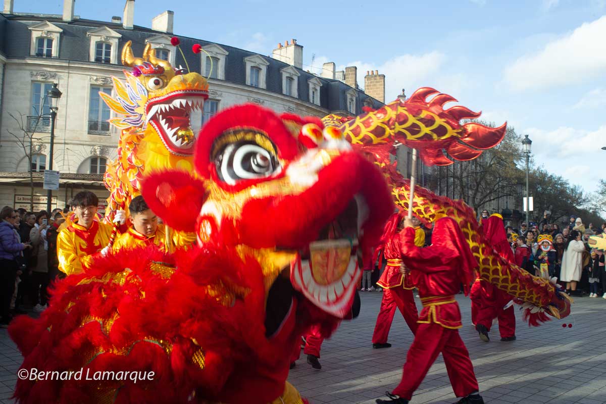 Le Nouvel An Chinois lors de cette 10ème édition à Bordeaux, marque également le 60ème Anniversaire des Relations Diplomatiques entre la France et la Chine établies de manière audacieuse par Charles de Gaulle. Le Nouvel An chinois et célébré depuis ce samedi 10 février pour une durée de quinze jours, il est l’occasion de perpétuer des traditions ancestrales, dont celle de ne surtout pas utiliser ou d’éviter le chiffre 4. Ce chiffre 4, il est complètement interdit de l’utiliser durant les festivités, même à l’oral, sous peine de grande malchance ou de malheur. Cette nouvelle année est placée sous le signe du seul animal mythique parmi les douze signes du zodiaque, censé apporter créativité et chance. Pendant des siècles, le dragon et le lion ont été honorés dans la tradition chinoise pour apporter chance et prospérité aux communautés.