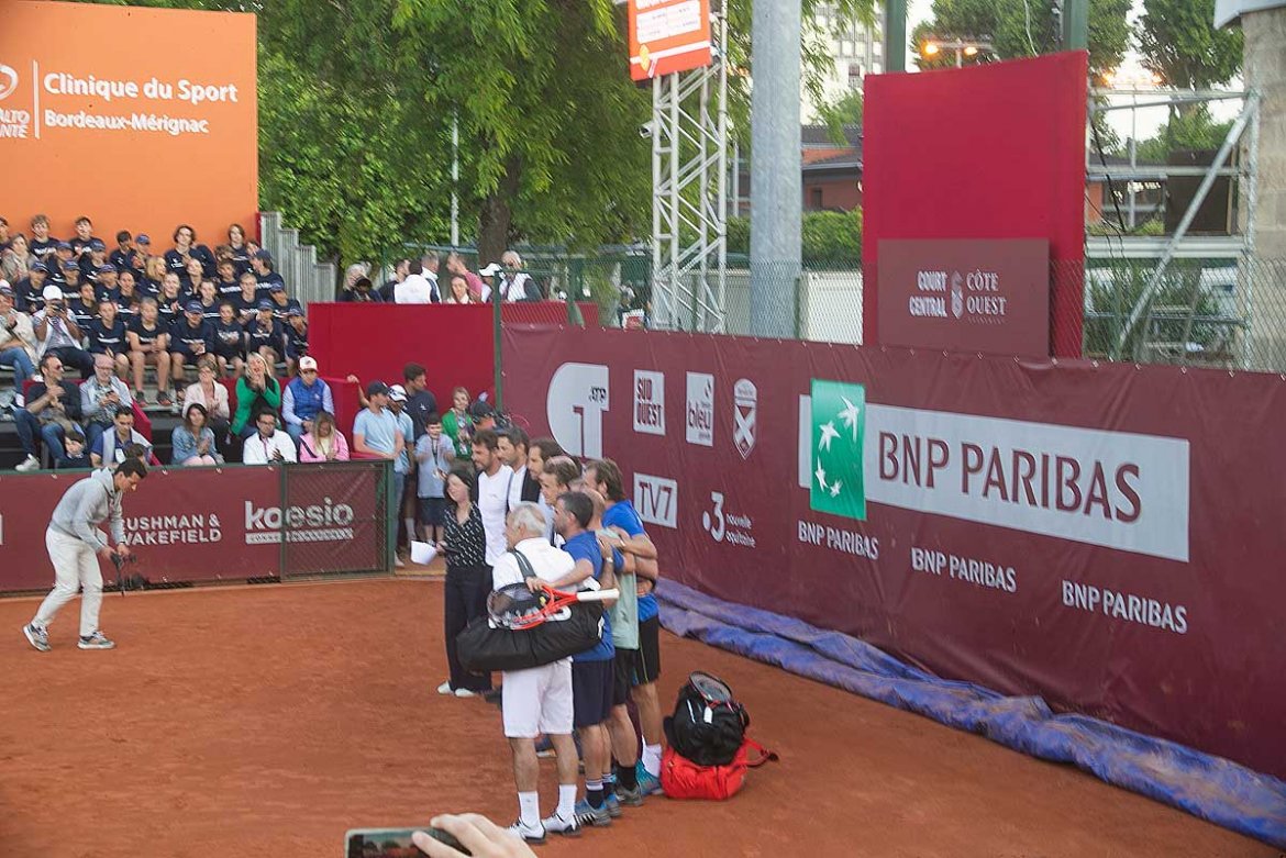 Tous les joueurs sont arrivés et durant ce dimanche ils se sont échauffés et les curieux étaient nombreux autour des courts pour les voir évoluer raquette en main que ce soit de la gauche ou de la droite selon qu’ils soient droitiers ou gauchers et tout au long de la journée cela a été la découverte ou entre curieux on échangeaient les noms de ceux qui évoluaient sur les courts avant qu’annoncé à 18 heures la cérémonie d’ouverture c’est déroulée avec un très désagréable retard de trente minutes sur l’horaire annoncé alors que le ciel se couvrait et que le vent se levait.