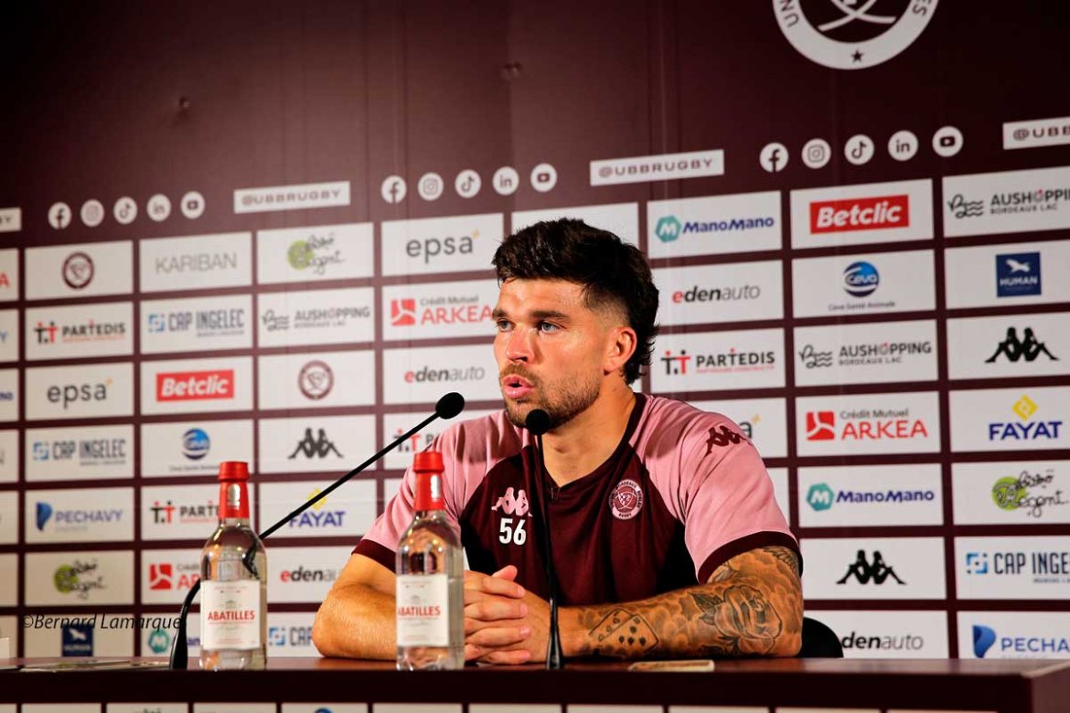 Pour Maxime Lamothe "face à La Rochelle, si on n’y met pas les ingrédients ce sera négatif et il faudra avoir l’état d’esprit au combat face à La Rochelle". Les esprits restent un peu traumatisé avec cette défaite la saison passée juste avant la demie finale et on se demande encore où l’équipe avait la tête pour cette rencontre qu’elle a laissée échapper. Il précise aussi que l’UBB après son parcours de la saison passée va être attendue. Pour Yannick Bru il y a toujours des points d’interrogations avant d’entamer une saison comme le niveau physique, la cohésion et le niveau d’efficacité. Il précise "on a envie de faire un bon départ" et il a précisé "il faut accepter les coups durs" en spécifiant que la saison passée il y avait eu peu de blessure e parfois la chance n’est pas présente et parfois le destin te présente l’addition. Cela n’empêche pas de se mettre dans le mouvement pour faire face. Ces absences sont un challenge qu’il va falloir relever mais d’autre part pour Moefana et Lucu cela va se traduire par une prolongation des vacances qui vont leur permettre de récupérer et de se resourcer. Quand on est dans la position de jouer les premiers rôles, il y a toujours des menaces et il faut être capable de faire face. Soumis à la question Jalibert a affirmé clairement que sa santé était bonne et qu’il se sentait bien. Les absences c’est un bon test pour voir si on est capable de faire face et il a précisé qu’il s’entendait bien avec Page Relo et que à l’entrainement la relation était bonne et que ce match permettrait de clarifier leur entente. Lui qui a aussi connu les les blessures précise qu’elles font partie du jeu même s’il est déçu de l’absence de Max et de Yoram mais cela peut être un beau challenge.