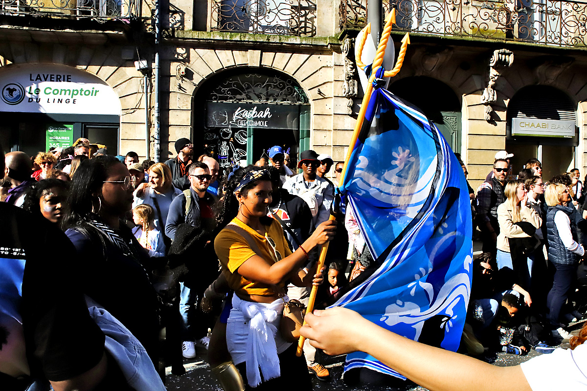 Cette année, le thème des « fleuves et des mers » a servi de fil conducteur. Créatures marines, silhouettes bleutées et références aquatiques ont ponctué la parade. Au passage cours Victor-Hugo, l’arrière du cortège offrait un autre visage de la fête. Moins familial, plus rythmé, porté par les basses et les percussions, il mettait à l’honneur la culture antillaise.