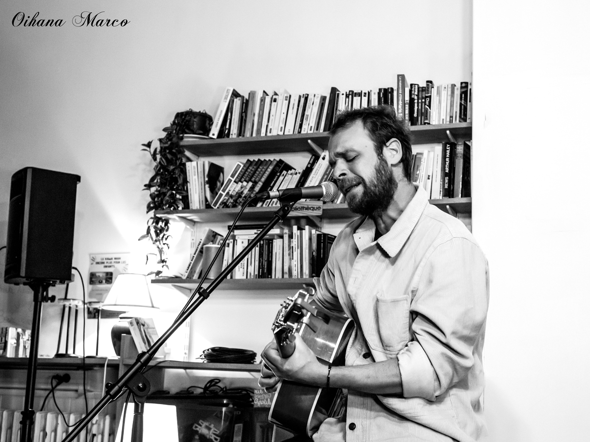 Ce samedi soir, c’était une première au KAWA NHAN, café associatif léognanais qui accueille régulièrement des débats, des ateliers, mais encore peu de concerts. L’acoustique modeste, mais l’énergie du lieu compensait largement. Et pour une première, quel baptême que celui de Cyril Mokaiesh.