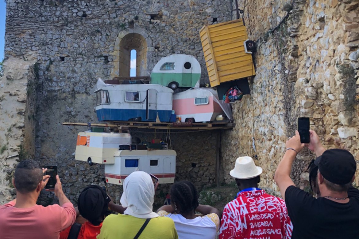 L’œuvre s’inspire d’habitats aussi divers que les cabanes flottantes de pêcheurs vietnamiens, les bric-à-brac des favelas ou les refuges naturels faits de branchages et mousses. Dans cette tension permanente entre visibilité et modestie, le visiteur est invité à observer avec humilité, sans intrusion, ce monde fragile et chargé d’histoires, qu’elles soient humaines ou naturelles.