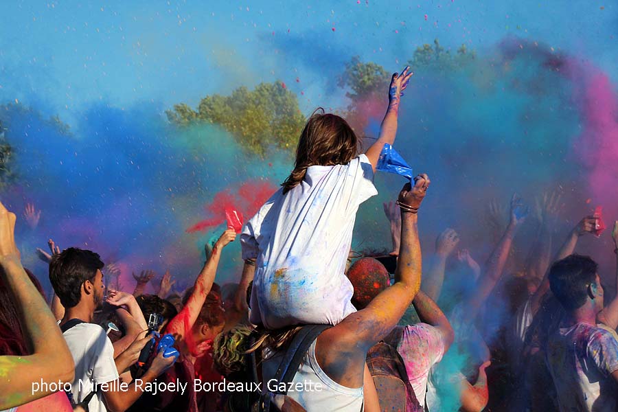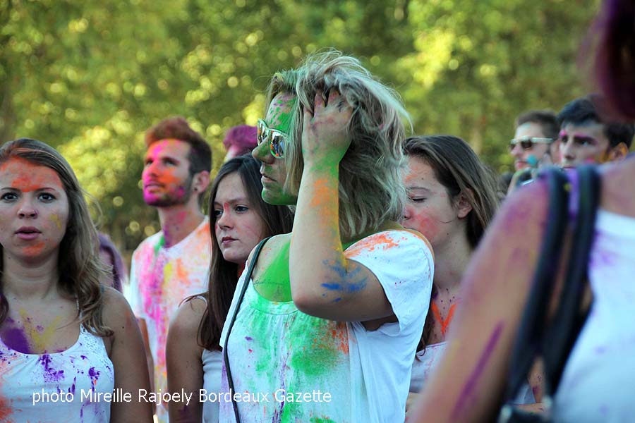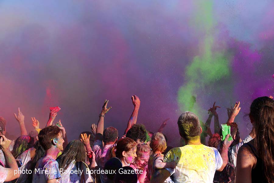 A mi chemin entre le Percent et la bataille de confettis c’est un moment ultra-libérable où tout le monde avec la couleur qu’il possède ou plutôt qu’il a en main colorie tout le monde. Chacun colorié à sa manière est aussi colorié à la manière des autres, c’est vraiment haut en couleurs et pourrait faire penser à "enfants de tout pays et de toutes couleurs" avec la participation des adultes qui s’offrent un moment d’enfance.