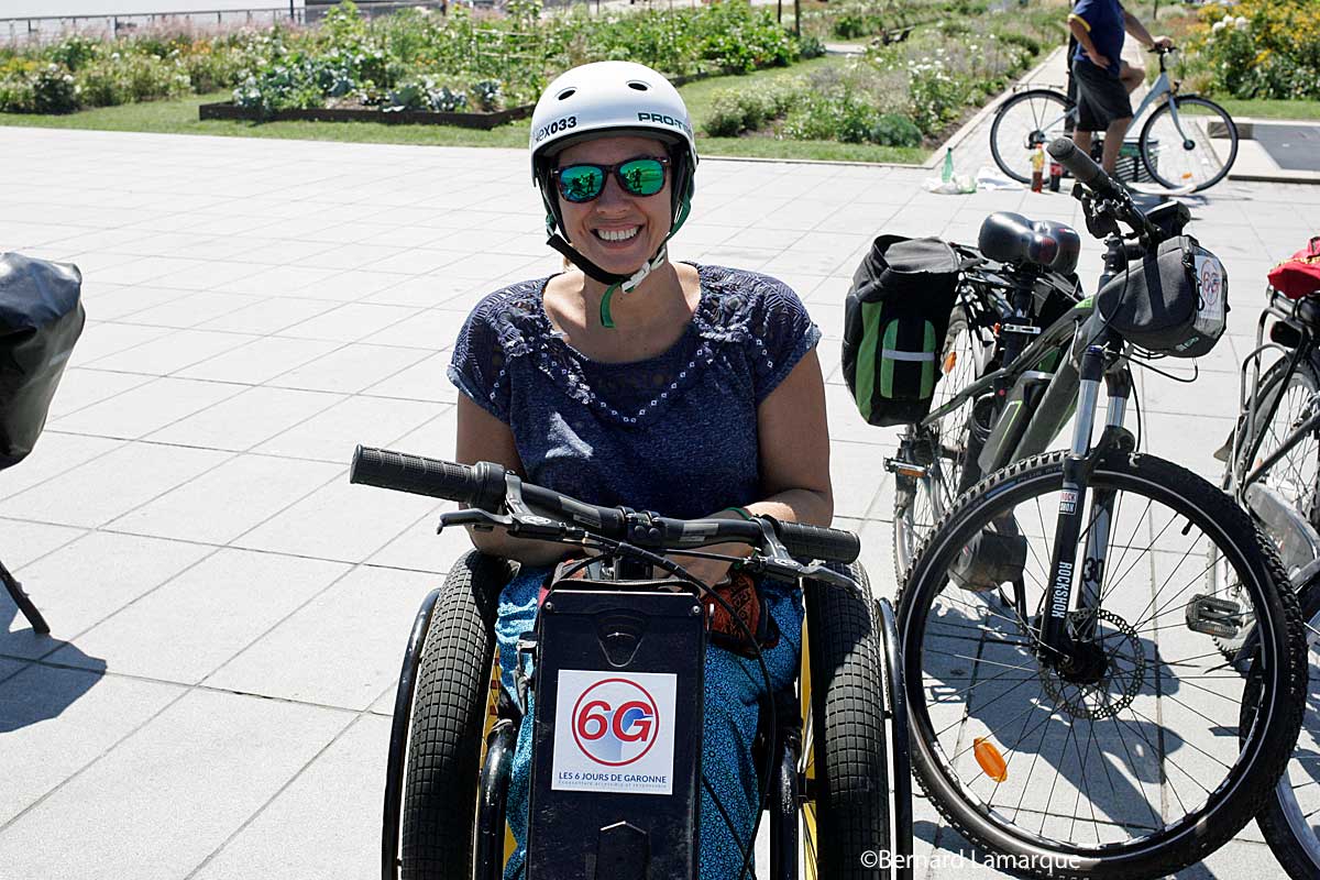 Regroupés au miroir d’eau avant de reprendre la route pour les uns, le fleuve pour les autres, les participants identifiés 6G ont pu échanger avec les curieux venus les voir partir pour l’étape les menant à Plassac en ce Jeudi. Ainsi depuis le départ de Tonneins le mardi 5 juillet les naviguant ont touché la terre souvent éloignés de la caravane des suiveurs en vélo avec de nombreux handicapés avec leur système de locomotion parfois aidé par la traction électrique de manière très ingénieuse ou des systèmes uniquement à pédales actionnés par les bras. C’est ainsi qu’il y avait aussi une pirogue à huit places avec six valides et deux handicapés pour démontrer qu’il n’y a pas de vrais différences entre valides et handicapés dans cette randonnée découverte. La première étape a conduit les six jours de Garonne de Tonneins en Lot et Garonne à La Réole en Gironde pour les participants empruntant les pistes cyclables et Bourdelles pour les adeptes du fleuve. Puis la seconde journée les participants fleuve sont arrivés au Tourne où ils ont été accueillis au chantiers Tramasset et les participants pistes cyclable sont arrivés à Créon où ils ont trouvé refuge soit au Camping Belair soit à l’hôtel Atena. Toute cette organisation avec un parcours route et un parcours fleuve demande beaucoup de logistique à gérer et de sécurité particulièrement pour les participants fleuve.