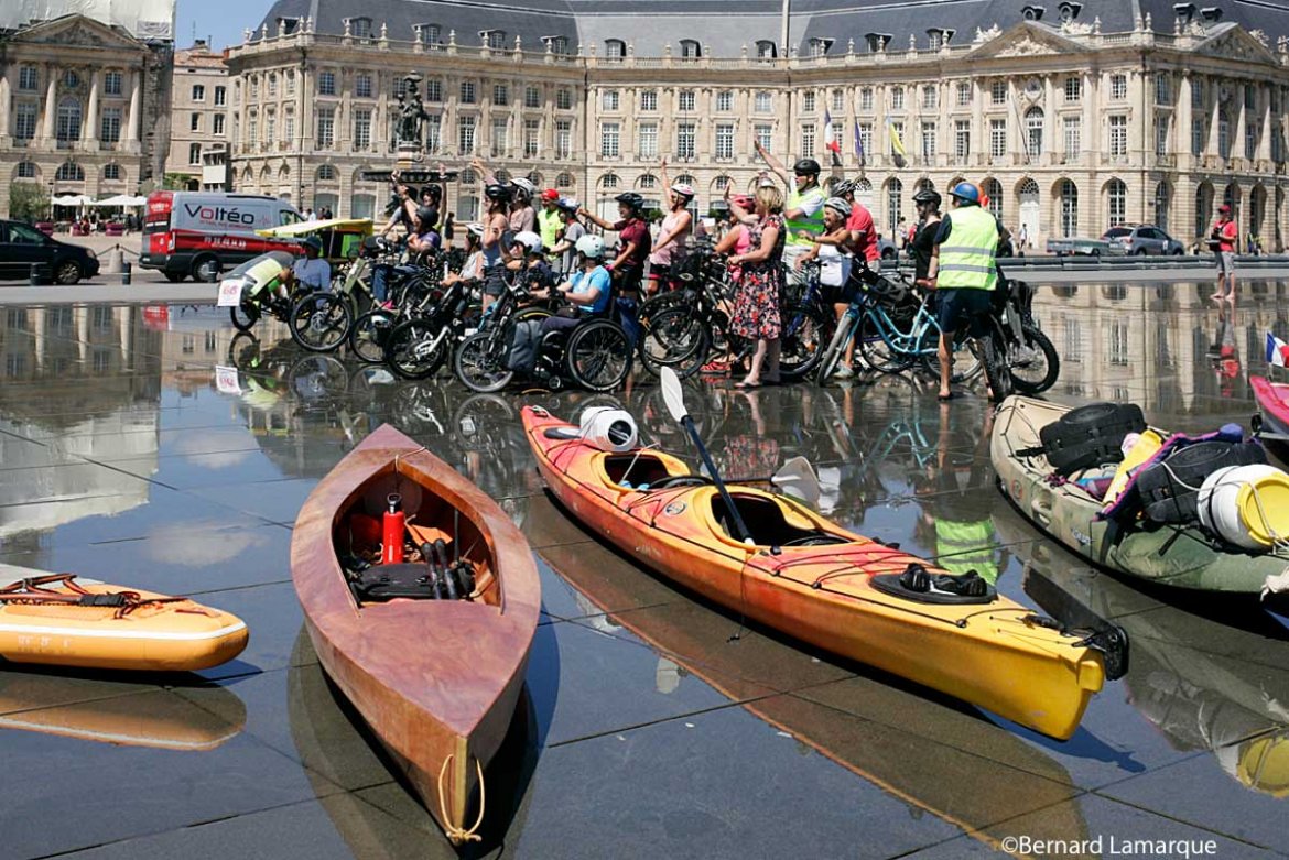 Au soir du troisième jour des 6 jours de Garonne les participants sont arrivés à Bordeaux en provenance de Le Tourne par la voie d’eau et de Créon pour la piste cyclable afin de se retrouver ensemble pour la première fois sur la rive droite aux quais de Queyries. Les participants à cette promenade particulière se sont retrouvés avant le départ du jeudi sur le Miroir d’eau pour rencontrer le public bordelais afin d’échanger sur la manifestation avant de prendre la direction de Plassac. Les participants pistes cyclables devaient aller à Lamarque pour prendre le bac afin de traverser pour rejoindre la rive droite avec le bac Lamarque - Blaye, pour ensuite se diriger sur Plassac pour reformer le groupe pour une deuxième soirée à passer ensemble d’où les six jours de Garonne s’élanceront le lendemain pour se diriger vers Mortagne sur Garonne. Le lendemain il sera alors question de rejoindre le but ultime de l’itinérance douce mise en place pour aller de Tonneins à l’entrée de l’estuaire à Saint Georges de Didonne. Les 6 jours de Garonne visent à développer l’autonomie des aventuriers car c’est ainsi qu’on nomme les participants. La rencontre et le partage sont les moteurs de cette aventure inclusive tournée vers le cent pour cent local des territoires traversés et la nature.
