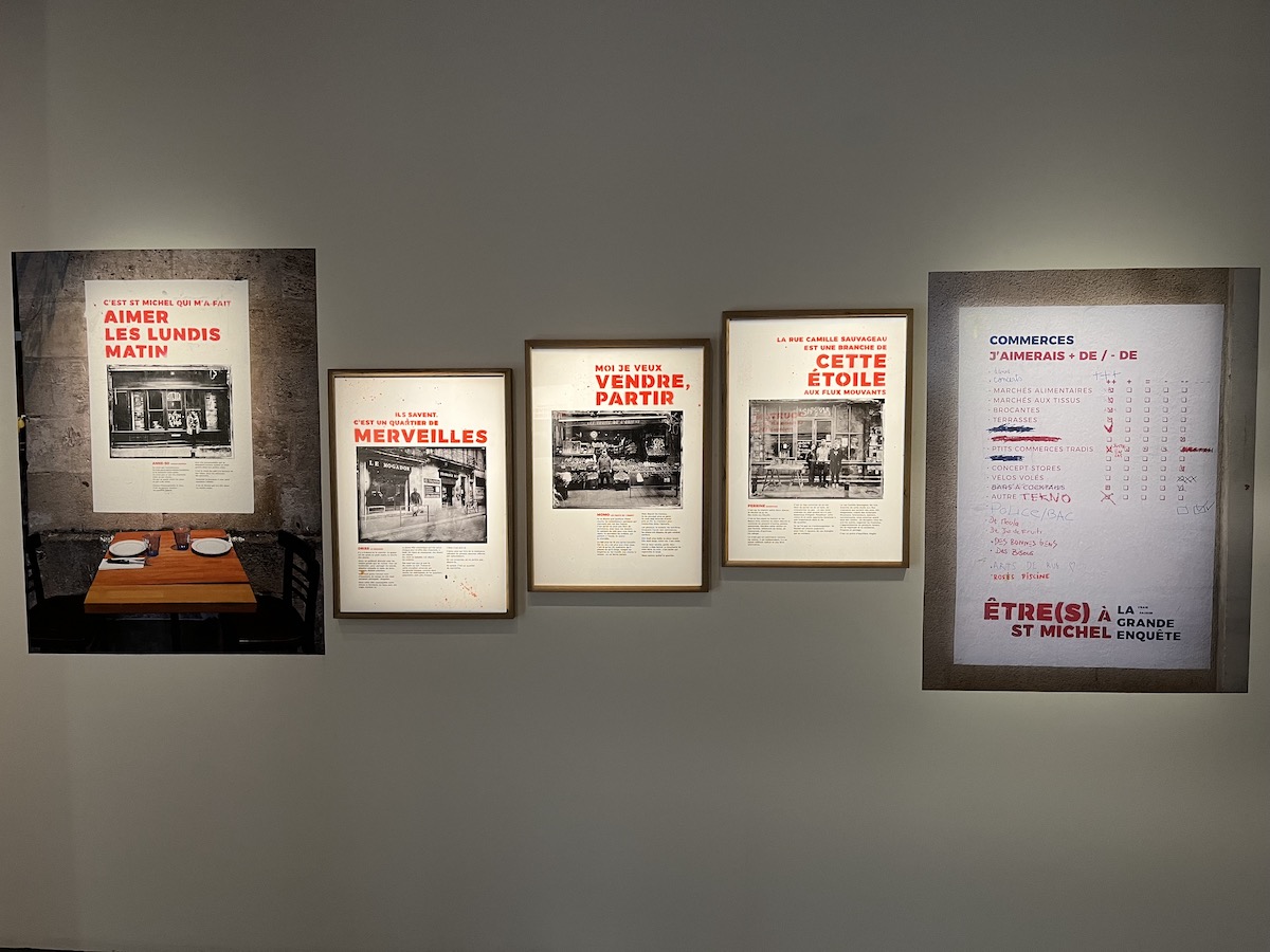 Les habitants aussi aiment cet endroit, chacun à leur manière, et conscients de ses défauts. Certains veulent partir certes, mais l’attache est forte. La (vraie fausse) Grande Enquête grandeur nature menée par Jonas Laclasse a permis de dégager les sentiments de tous à travers ce « dispositif participatif ». Affichés sur les mûrs, sur les tables des bars à thé, des questionnaires sur St-Michel. Quels commerces aimeriez-vous avoir ? Lesquels sont de trop ? Comment vous sentez-vous ? Chacun est libre d’écrire ce que bon lui semble, sans filtre. Des résultats parfois drôles ou touchants qui invitent les visiteurs à se questionner, eux aussi, sur ce qu’est cet endroit. De cette exposition se dégage une belle diversité des cultures qui anime toujours la ville et lui permet d’y ajouter ce petit plus que d’autres cherchent tant.