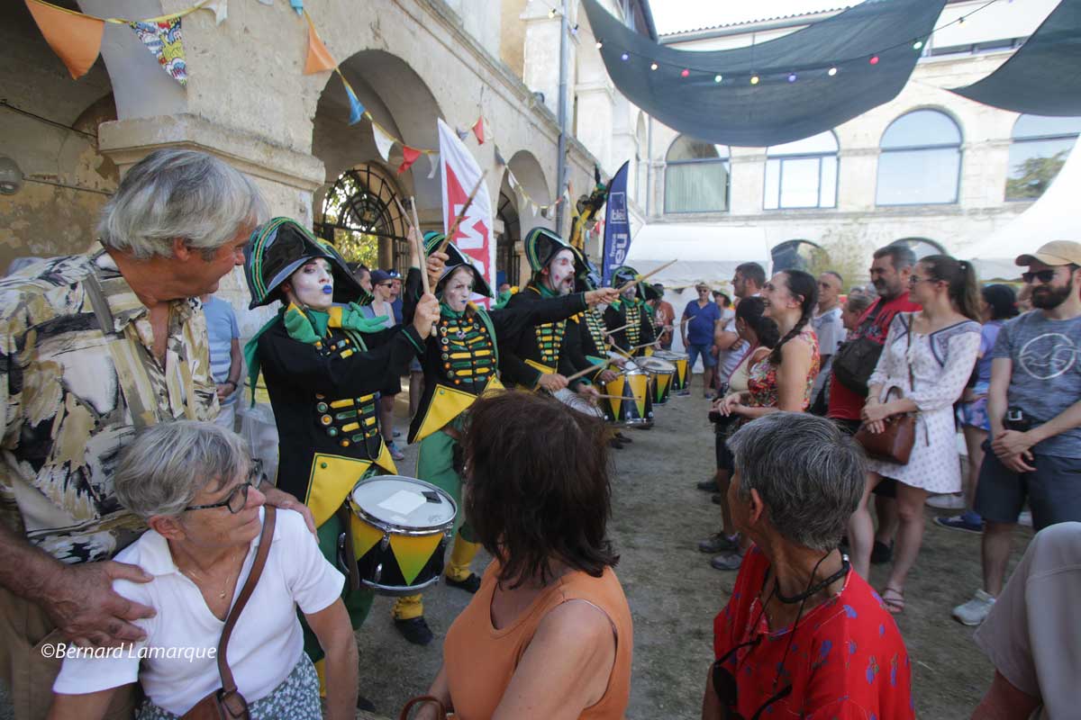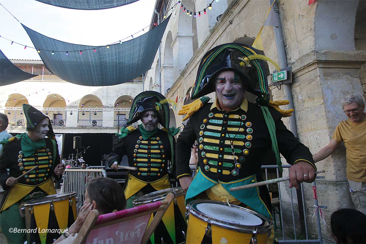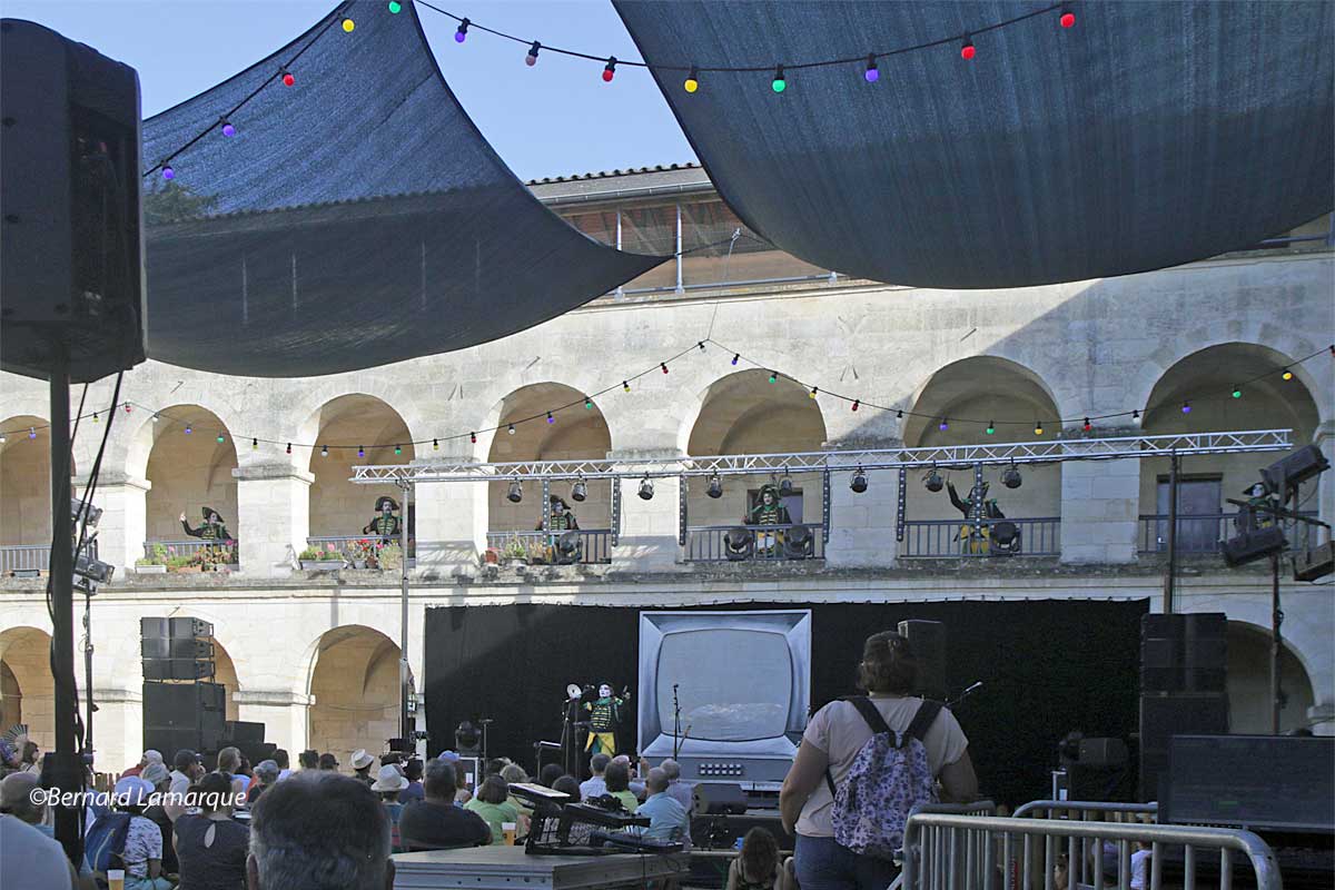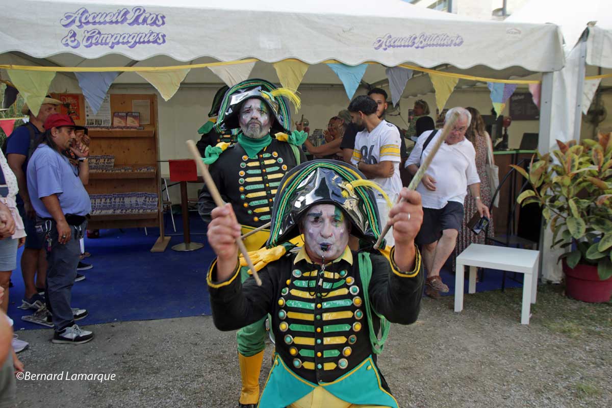 Durant cette édition 2024 la Cie Transe Express devait se produire dans le ciel des quais sur deux soirées mais elle a ajouté un petit passage à la Centrale qui beaucoup plu au public présent sur le coup de l’heure de l’apéritif ce samedi.