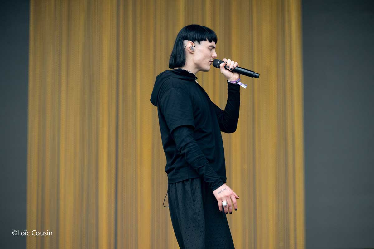 La soirée a commencé avec le chanteur Aimé Simoné et son tube « Shining Light » que l’on entend partout et qui est frais et très bon dans un style artistique particulier, mélange de pop, de musique électro, de rock alternatif, de trap, d’indie pop et de punk. Celui qui avoue ne pas avoir eu une vie facile, a trouvé avec le public, un soutien et une reconnaissance à sa musique qui est très agréable. Un concert de 45 minutes, bien accueilli pour cet artiste à qui l’on souhaite une carrière longue.